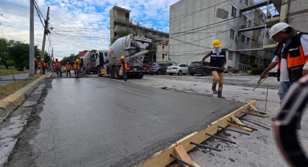 La meta se explicó es la instalación de 4 mil 725 metros cuadrados con 17.5 centímetros de espesor, además de 300 metros cuadrados de banquetas.