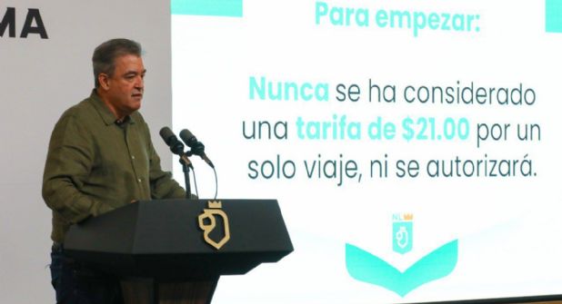Durante una rueda de prensa en "Nuevo León Informa", sin convocatoria previa a medios, Villarreal descartó que la administración estatal autorice un aumento en la tarifa del transporte público.
