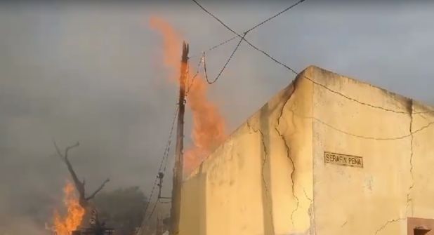 Elementos de Bomberos y Protección Civil municipales y estatales atendieron el reporte de fuego en el inmueble ubicado en el cruce de las calles Serafín Peña y Benito Juárez en la comunidad de Dulces Nombres.