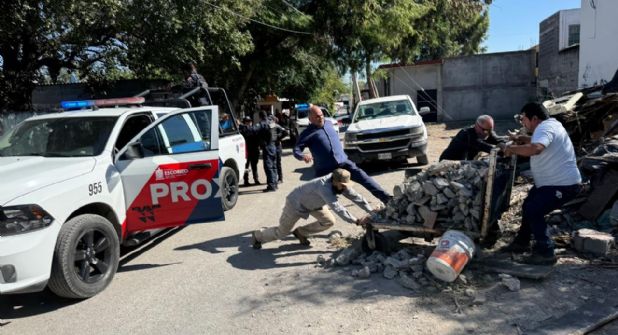 Policias de Proxpol Escobedo e inspectores de la Secretaría Ambiental detuvieron a un hombre que fue sorprendido tirando escombro en la vía pública.