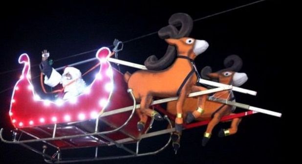 Aunque la Navidad estuvo a punto de ser interrumpida por la aparición del Grinch momentos antes de la ceremonia, el entusiasmo y la alegría de decenas de niños hicieron posible la llegada de Santa Claus desde el cielo montado en su trineo.