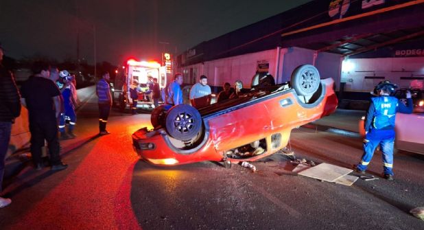 Un accidente vial tipo volcadura registrado en el cruce de Pena Guerra y la Avenida Adolfo López Mateos, en San Nicolás, movilizó a diversas corporaciones de rescate y tránsito la noche del miércoles.