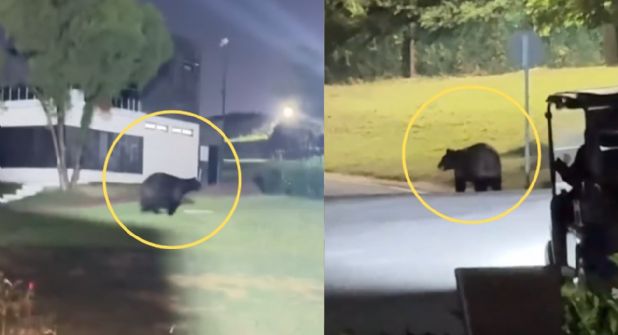 Mientras el oso se alejaba, personal de seguridad de la residencia, a bordo de un carrito de golf, se acercó para intentar ahuyentarlo mediante el sonido de una bocina.