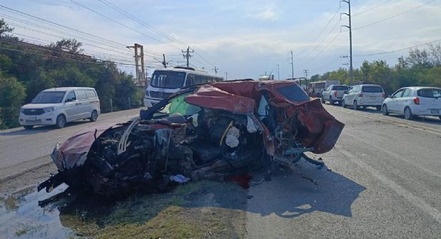 De acuerdo con los primeros reportes, una camioneta Ford Explorer en color rojo, con placas SZN-836-A, perdió el control y se impactó contra un camión de transporte de personal de la empresa Link, con número económico A-28 y placas A18814R.