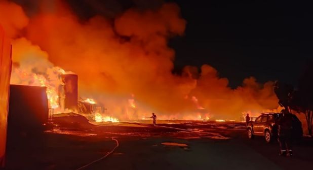 El siniestro ocurre en una pensión de trailers. En el lugar se encuentran elementos de Protección Civil de Nuevo León intentando apagar las llamas, así como también elementos del cuerpo de Bomberos de Nuevo León.