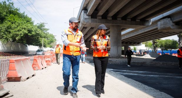 La Encargada del Despacho de la Presidencia Municipal de Monterrey, Betsabé Rocha Nieto, en compañía de Guillermo Hernández, secretario de Infraestructura Sostenible, llevó a cabo una inspección en la construcción del bajo puente en Churubusco y Vía a Tampico, con el objetivo de garantizar la seguridad de los peatones en el área.