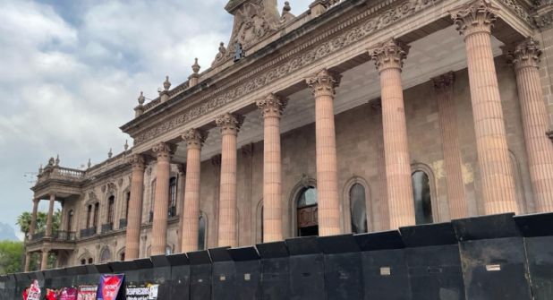 Las murallas antimotines rodearon toda el perímetro de la sede del Poder Ejecutivo en Nuevo León, incluyendo las calles de Zaragoza, Doctor Coss y 5 Mayo.