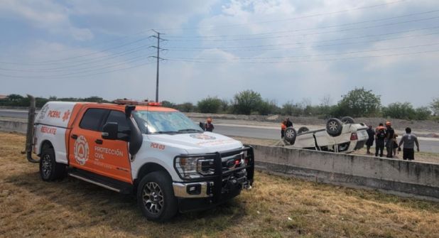 Los hechos se dieron en el Anillo Vial, a la altura del kilómetro 53, lugar al que acudieron elementos de Protección Civil de Nuevo León para atender el llamado de emergencia sobre la volcadura de un vehículo particular.