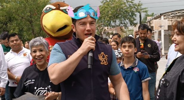 En medio del punto más alto del eclipse solar y rodeado de cientos de adolescentes, el gobernador Samuel García calificó el fenómeno astronómico como "señal de que se va la vieja política".