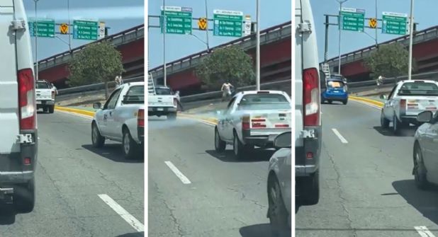 En el video difundido a través de X, antes Twitter, se aprecia como los tripulantes de una camioneta Ford Ranger de color blanco descienden del vehículo y empiezan a recoger objetos del piso.