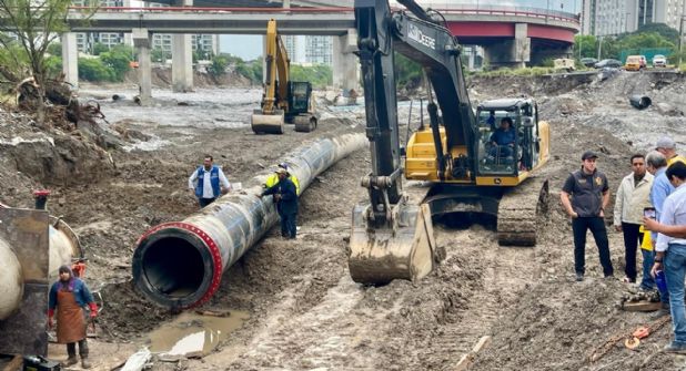 El desperfecto en la tubería provisional de 48 pulgadas está siendo abordado por equipos de Agua y Drenaje de Monterrey, quienes están trabajando para reparar la falla y ajustar las válvulas necesarias para reanudar el flujo de agua.