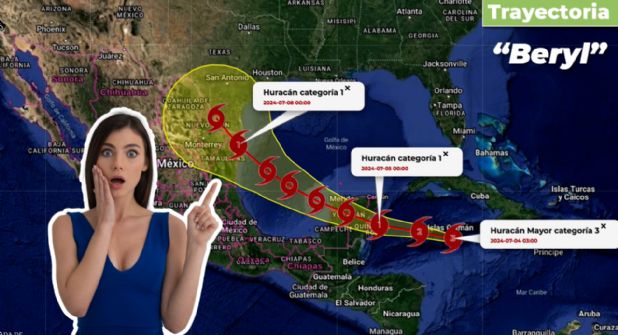 El huracán "Beryl" tendrá dos impactos significativos en el país. El primero se producirá en la Península de Yucatán este jueves, después se prevé que el temporal continúe por el Golfo de México e impacte las costas de Veracruz y Tamaulipas, el domingo o lunes.