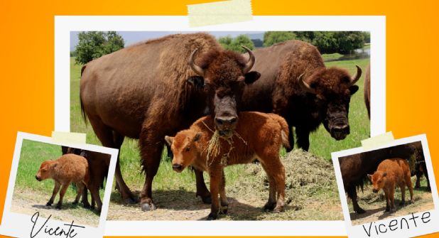 El bebé bisonte, bautizado como 'Vicente' tras una consulta en redes sociales, aún muestra su pelaje cobrizo, que con el tiempo se transformará en un tono café más intenso.