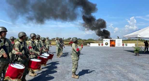 En una operación conjunta entre la Fiscalía General de la República y la Secretaría de la Defensa Nacional, este viernes se llevó a cabo la incineración de una gran cantidad de drogas en Nuevo León.