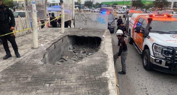 Dos personas resultaron lesionadas al registrarse un derrumbe en la parada del transmetro en Monterrey.