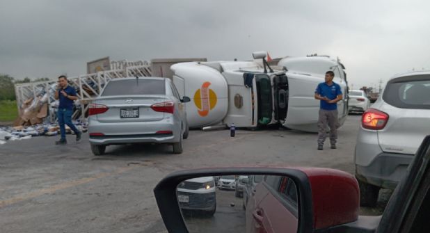 De acuerdo con los primeros reportes, la volcadura habría sido porque el camión intentó dar una vuelta en "u", pero su propio peso hizo que se ladeara y cayera sobre la carretera a Monclova.