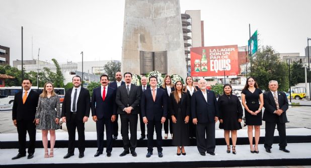 En conmemoración por el 428 aniversario de la fundación de Monterrey, se llevó a cabo una Guardia de Honor por parte del encargado de despacho del municipio, Francisco Bahena y el Gobernador Samuel García Sepúlveda.