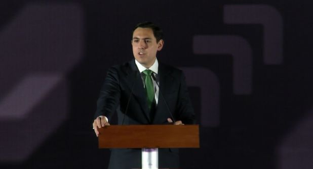 En punto de las 6:32 inició la sesión solemne en una plaza comercial, donde el actual alcalde, César Garza Villarreal, dirigió un mensaje a su hijo y próximo edil.