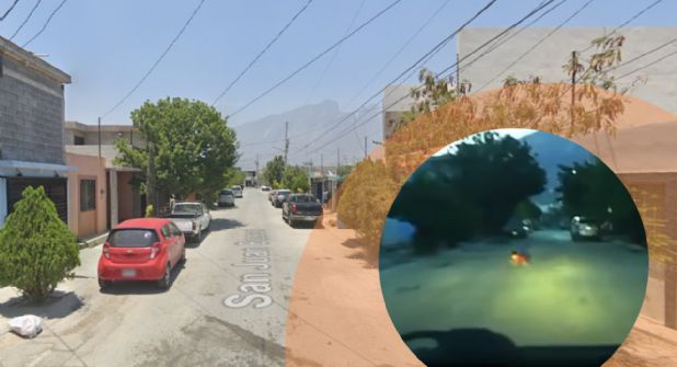 En la grabación se observa cómo un automovilista va conduciendo por la calle San Juan Bosco en la colonia Riberas de Capellania, en el municipio de García, Nuevo León.