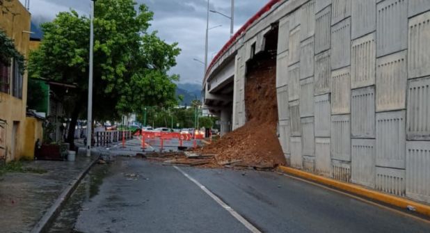 Esta tarde se registró un derrumbe en el puente de la avenida Morones Prieto.