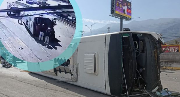 Este jueves 23 de enero, alrededor de las 10:56 horas, un camión de pasajeros sufrió una volcadura en la intersección de Av. Garza Sada y Antiguo Camino a Minas de San Pedro, en la zona de Lomas de Valle Alto, en Monterrey.