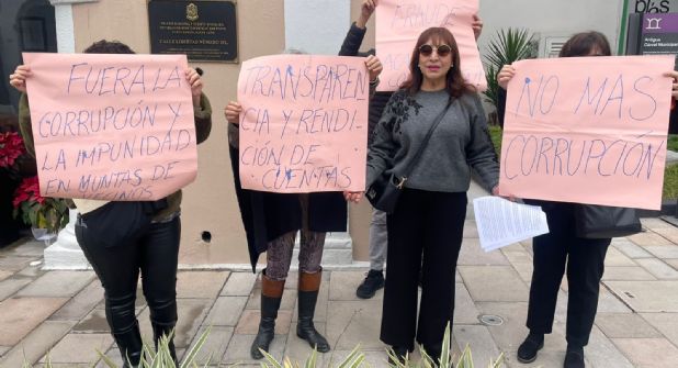 Con la finalidad de solicitar al alcalde de San Pedro, Mauricio Fernández, auditar las subvenciones entregadas a la Junta de Vecinos de Valle de San Ángel, un grupo de vecinas de dicho sector se dio cita afuera del Palacio Municipal.