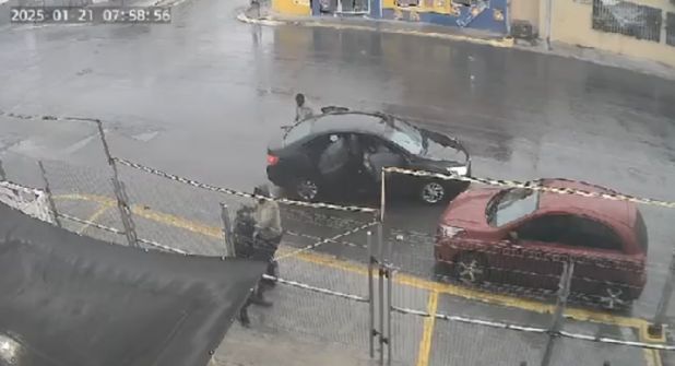 En las imágenes se observa un vehículo color negro que permaneció detenido en la contraesquina durante algunos minutos, aparentemente observando al comerciante. No fue hasta que este se distrajo al abrir los candados de la entrada, que el automóvil se acercó con cautela, sin alertar a la víctima.