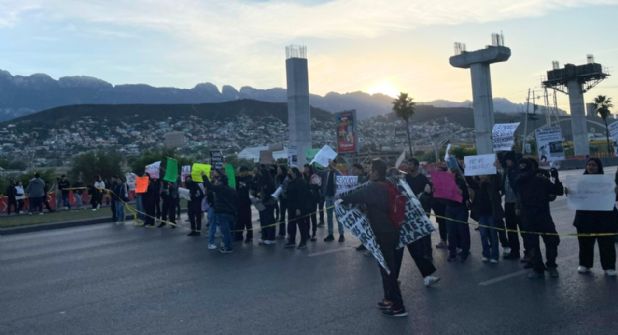 Tras liberar la avenida Constitución, el contingente marchó hacia el Puente del Papa para dirigirse a la avenida Morones Prieto, donde, de igual forma, bloquearon por completo la circulación, ahora en dirección al oriente.