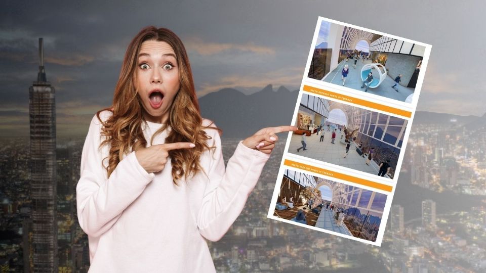 Según las imágenes, desde los pisos 99 y 100 se podrá ver el Río Santa Catarina; hacia la derecha, los municipios de San Pedro y Santa Catarina, incluyendo la zona médica conocida como Los Doctores. También se apreciarán montañas como el Cerro de las Mitras y a lo lejos, la zona de La Huasteca.