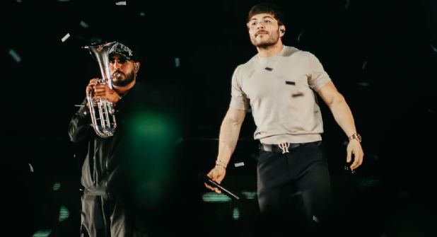 Uno de los momentos más destacados llegó con su versión de “Corazón partío”, en la que el cantante rindió un breve homenaje a Alejandro Sanz, mostrando una faceta más íntima de su estilo.