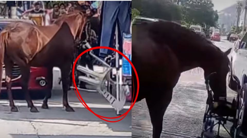 Un caballo fue captado caminando entre los puestos de un mercado en la colonia Laderas del Mirador, al sur de Monterrey, generando preocupación entre comerciantes y visitantes.