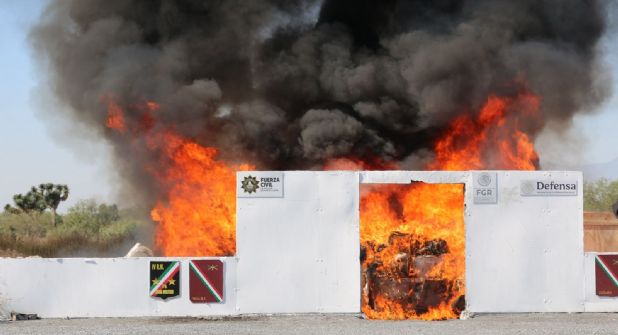 Más de 370 kilos de drogas fueron incineradas durante un operativo conjunto de la Fiscalía General de la República y la SEDENA en Escobedo, como parte de las acciones para combatir los delitos en materia federal.