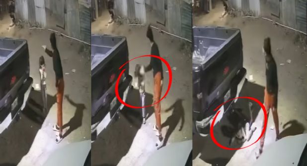 La grabación, captada por una cámara de seguridad, muestra el momento en que la madre le propina un golpe en la cabeza a la menor, lo que provoca que la niña caiga al suelo.