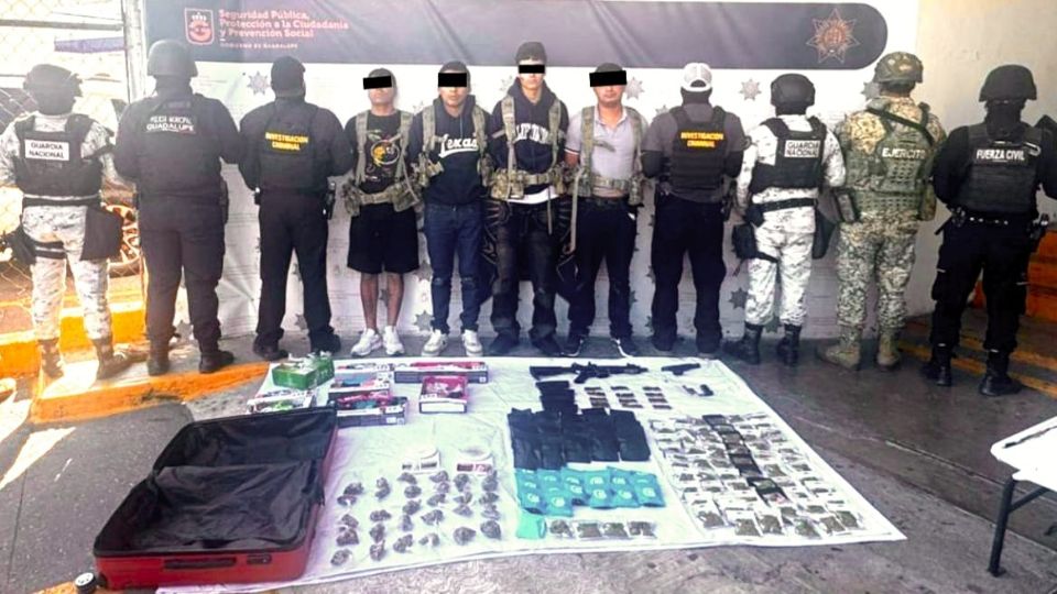 Cuatro hombres fueron detenidos en Guadalupe tras un operativo de seguridad en el que autoridades identificaron que presuntamente formaban parte de una célula delictiva vinculada a una organización criminal con presencia nacional.