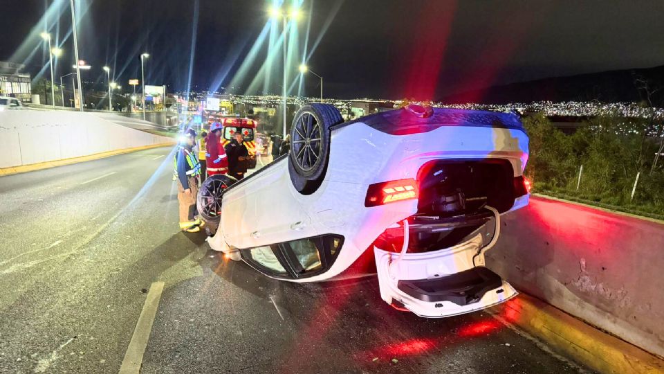Un menor de edad resultó con golpes leves luego de protagonizar una aparatosa volcadura cuando circulaba a bordo de su automóvil sobre la avenida Paseo de los Leones, a la altura de la colonia Cumbres Sexto Sector, en el municipio de Monterrey.