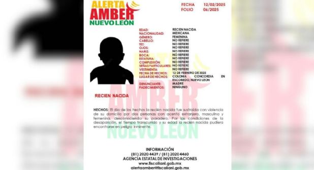 Autoridades de Nuevo León mantienen una intensa movilización dentro del área metropolitana de Monterrey tras el reporte del rapto de una bebé en Escobedo.