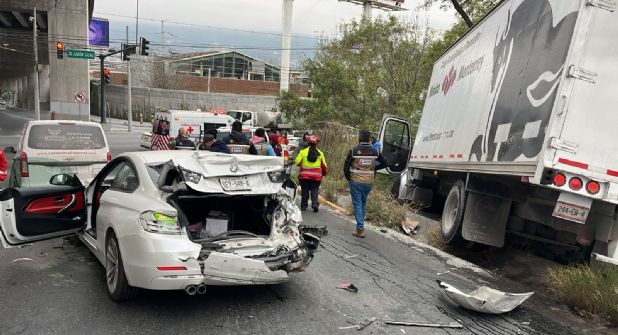 Un accidente vial múltiple se registró en Monterrey luego de que un camión de carga, presuntamente por una falla en los frenos, impactara contra varios vehículos que estaban detenidos en un semáforo.