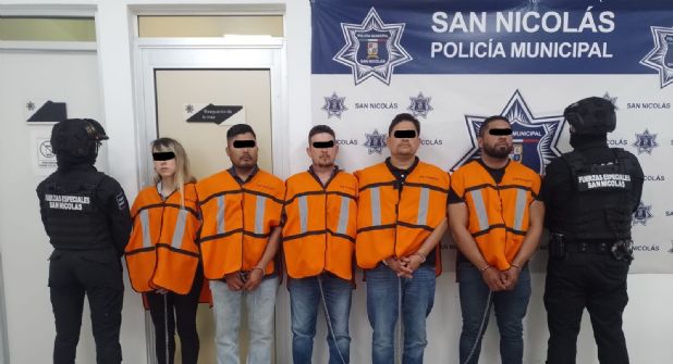 Los detenidos son: Luis F. de 44 años originario de Jalisco; Moisés R. de 42 años originarios de Jalisco, Eduardo G. de 41 años de Jalisco; Roberto L. de 32 años de la Ciudad de México, y Alejandra V. de 30 años del municipio de Apodaca.