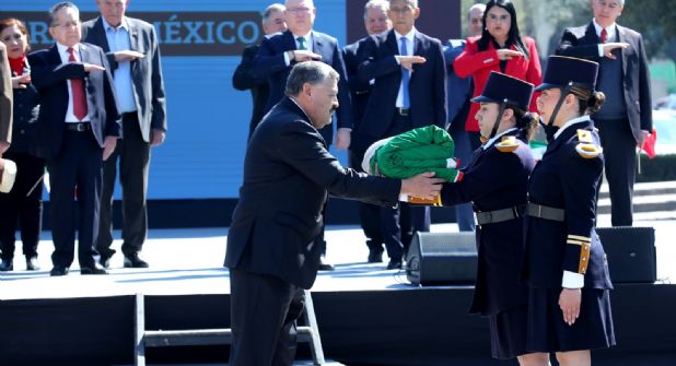 A las 11:00 horas, la Escolta Universitaria recibió la bandera de manos del rector para su izamiento en el asta principal de Ciudad Universitaria.