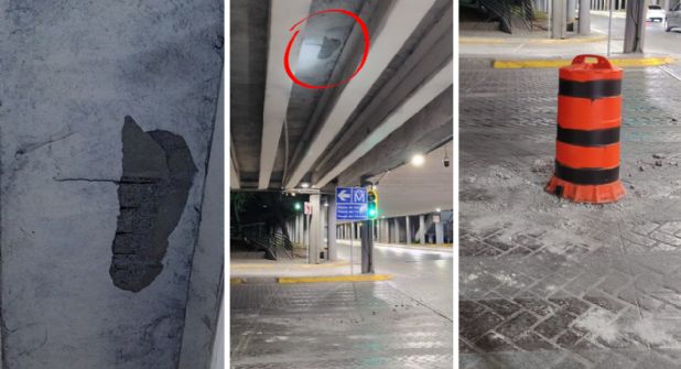 Un incidente ocurrido en la zona de la Macroplaza en Monterrey, específicamente en el área debajo de la misma, en donde se registró el desprendimiento de un recubrimiento del techo de aproximadamente 1.5 x 1.5 metros.
