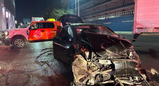 Según el reporte de las autoridades, el choque involucró un tractocamión Kenworth color morado con caja seca cuyo conductor se dio a la fuga tras el impacto. El otro vehículo afectado fue un Tesla negro conducido por Mauricio Chávez.