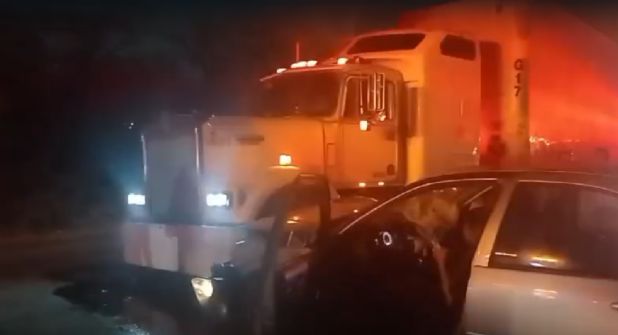 Según las primeras versiones, el vehículo particular circulaba por el camellón central que divide ambos carriles, cuando se impactó con un pequeño muro de concreto que no vio el conductor, por lo que perdió el control de la unidad y terminó impactándose contra la polvera del tráiler del lado izquierdo.