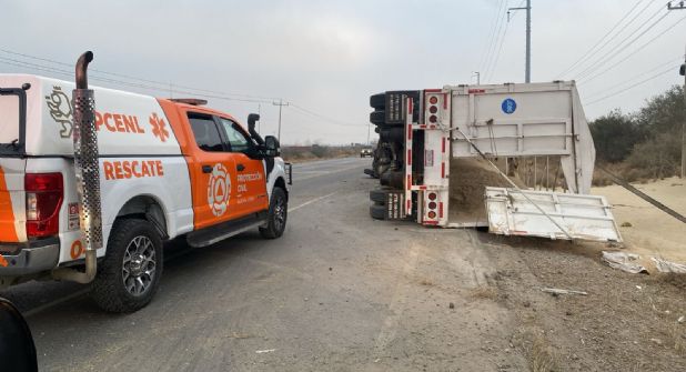 Al llegar al lugar, las unidades de emergencia encontraron el vehículo de carga pesada volcado y al operador, identificado como Carlos Miranda López, de 43 años, con una herida en el rostro.