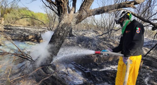 Un incendio forestal en el municipio de Mina, Nuevo León, ha consumido aproximadamente 150 hectáreas de matorral desértico y pastizal desde el pasado jueves 20 de marzo.
