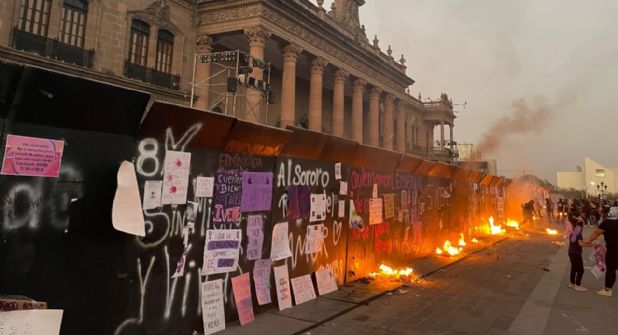 Durante la manifestación del 8 de marzo en Monterrey, un grupo de mujeres encapuchadas alteró el orden de la marcha y generó disturbios al iniciar la quema de carteles colocados previamente por diversos colectivos feministas, incluidos los de Morras Feministas.