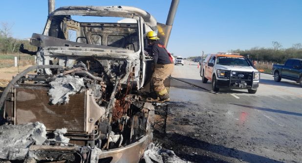 El conductor, identificado como Antonio Loyola, resultó ileso, aunque la cabina del tráiler fue consumida en su totalidad por las llamas.