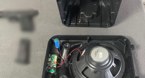Autoridades federales aseguraron dos armas de fuego y varios cartuchos útiles que venían ocultos dentro de una bocina transportada en un camión de una empresa de paquetería.