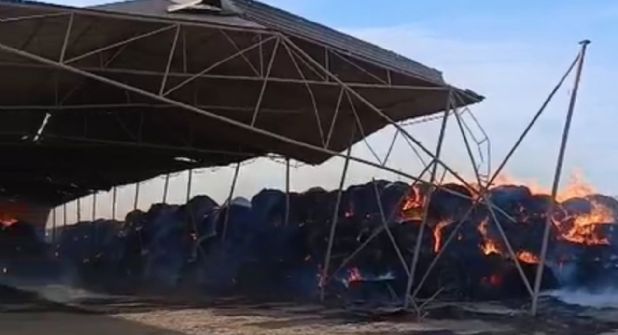 El fuego se originó en una zona de almacenamiento de pacas de zacate utilizadas como alimento para animales de engorda.