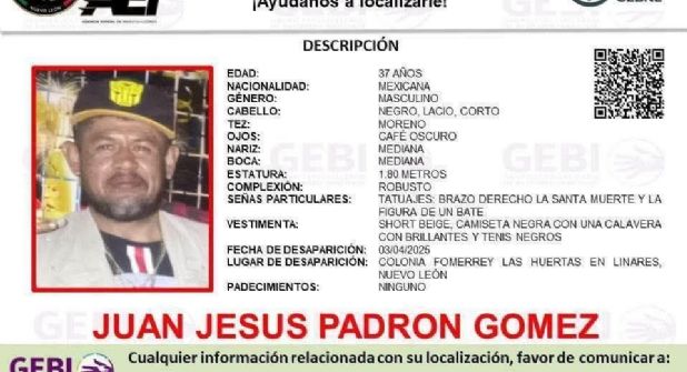 Elementos de la Dirección de la Secretaría de Seguridad Pública, Tránsito y Vialidad de Linares, fueron citados a comparecer ante la autoridad estatal tras la desaparición de Juan Jesús Padrón Gómez de 37 años, un hombre detenido por policías municipales el pasado 3 de abril y del que no se ha sabido nada desde entonces.