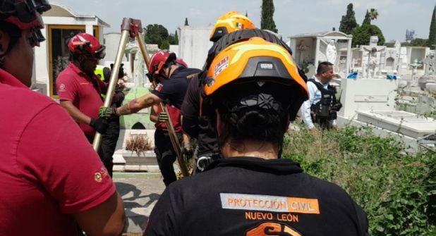 Una mujer de 52 años identificada como María de los Ángeles Morales Alonzo sufrió una caída de aproximadamente cuatro metros de profundidad al interior de una tumba en el panteón El Roble, ubicado en la colonia Mitras Norte, en Monterrey, Nuevo León.